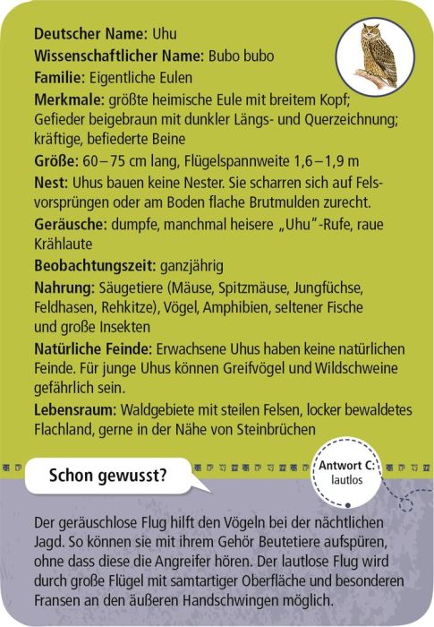 The handy boxes, each containing 50 cards and a detailed fold-out booklet, are the perfect companions for excursions, family walks in the woods, or weekends spent in the garden. The card sets are available on many exciting topics and combine interesting facts about animals, plants, insects, and other natural subjects with playful quizzes and vivid, true-to-life illustrations.