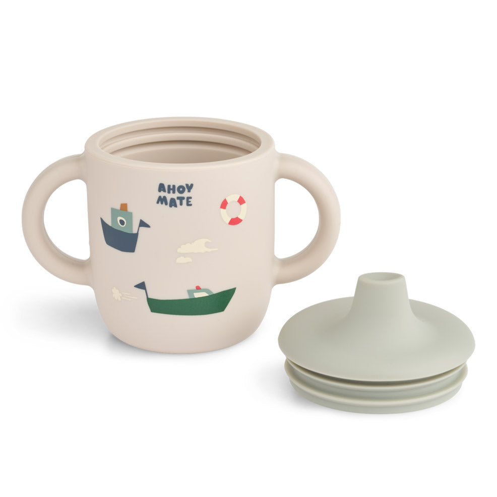 Perfekt, um die Fähigkeit des Trinkens zu meistern: Der Neil Sippy Cup der dänischen Marke Liewood verfügt über einen abnehmbaren Deckel mit kleinem Ausguss und glatten Griffen. Die Griffe sorgen für einen festen Halt und ermöglichen es dem Kind, das Halten und Kippen zu üben und sich auf die Verwendung eines offenen Bechers vorzubereiten. Der perfekte Trainingsbecher.