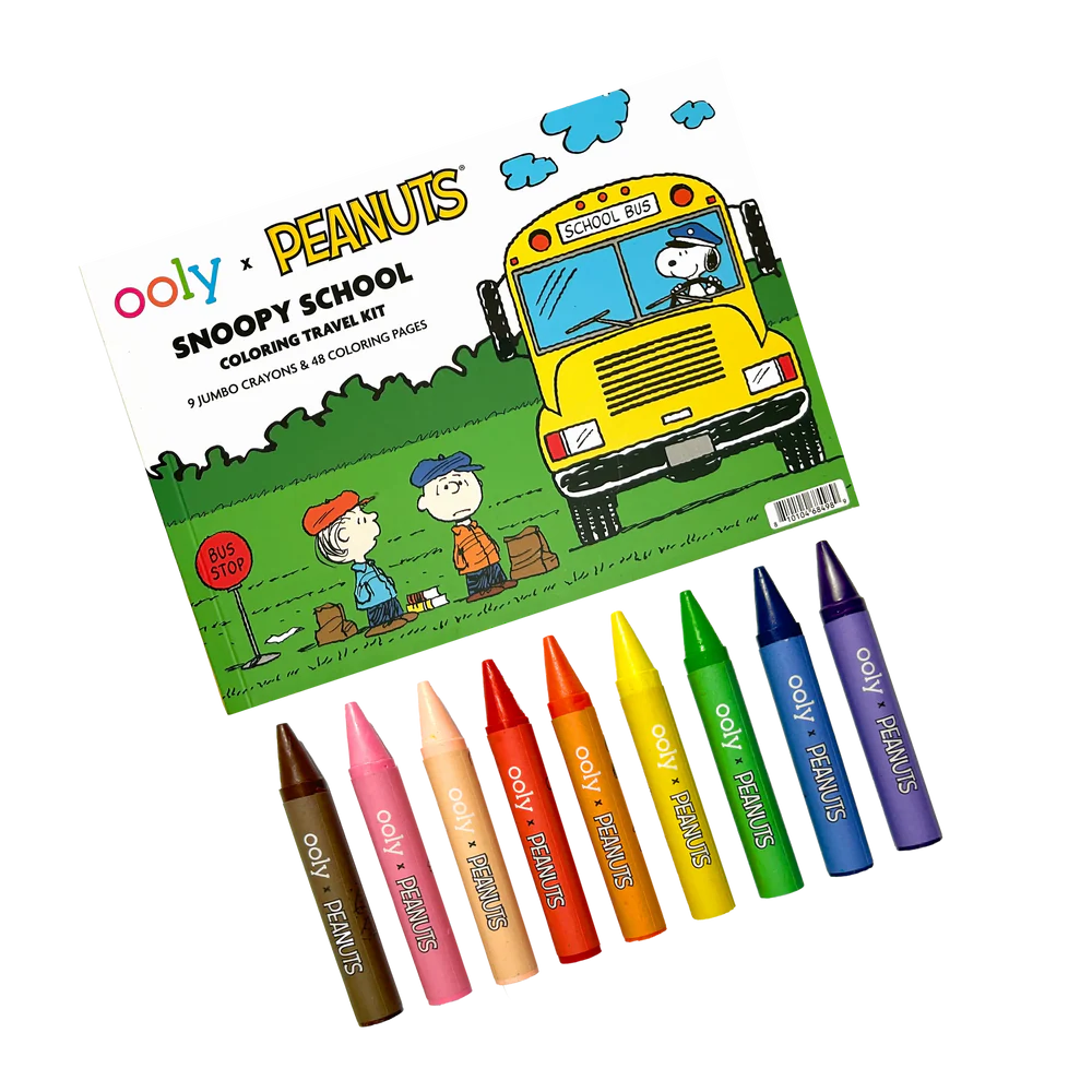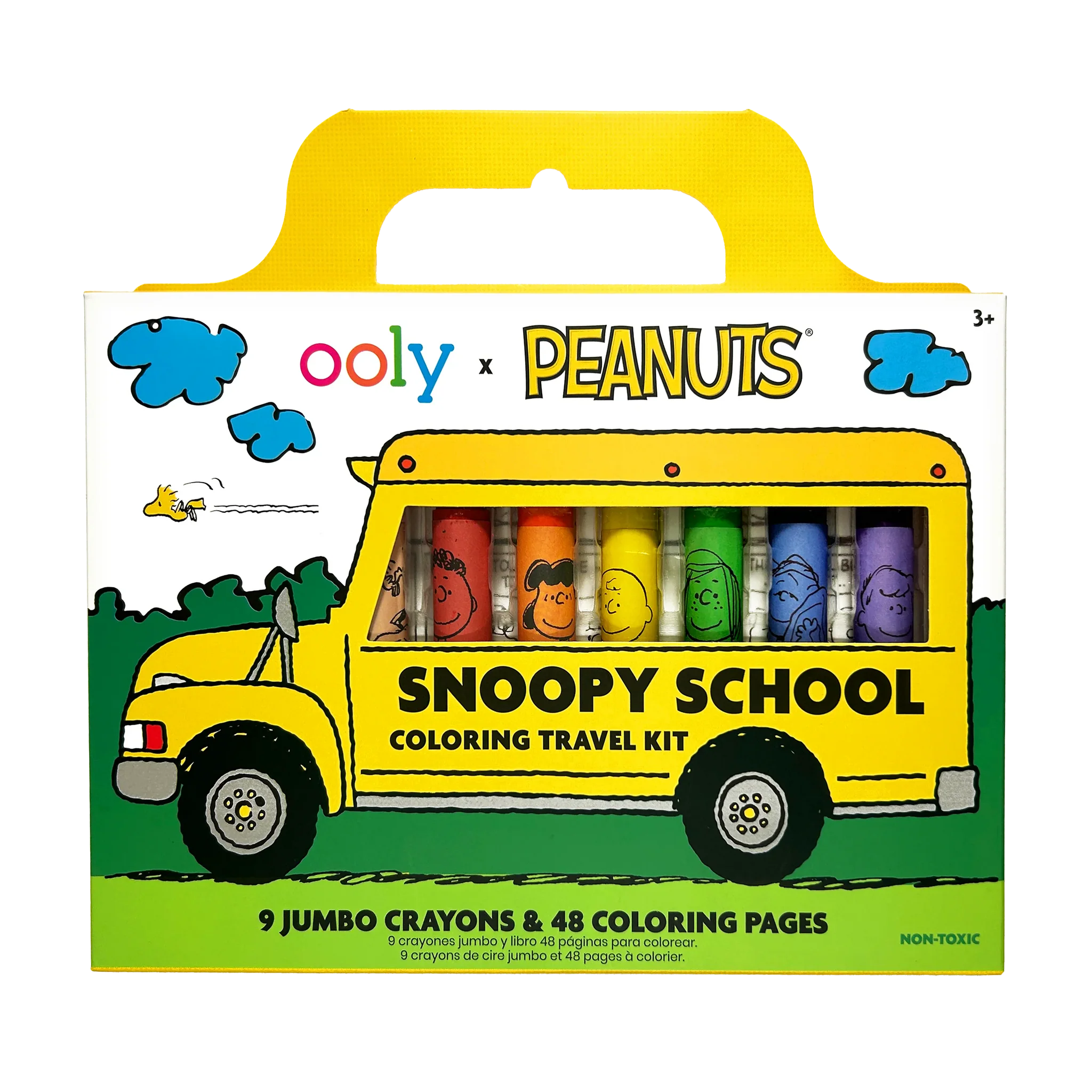 Feiern Sie Snoopy, Charlie Brown und die gesamte Peanuts-Crew auf einer farbenfrohen Reise mit dem OOLY x Peanuts Snoopy School Colouring Travel Kit. Perfekt für Snoopy-Fans.