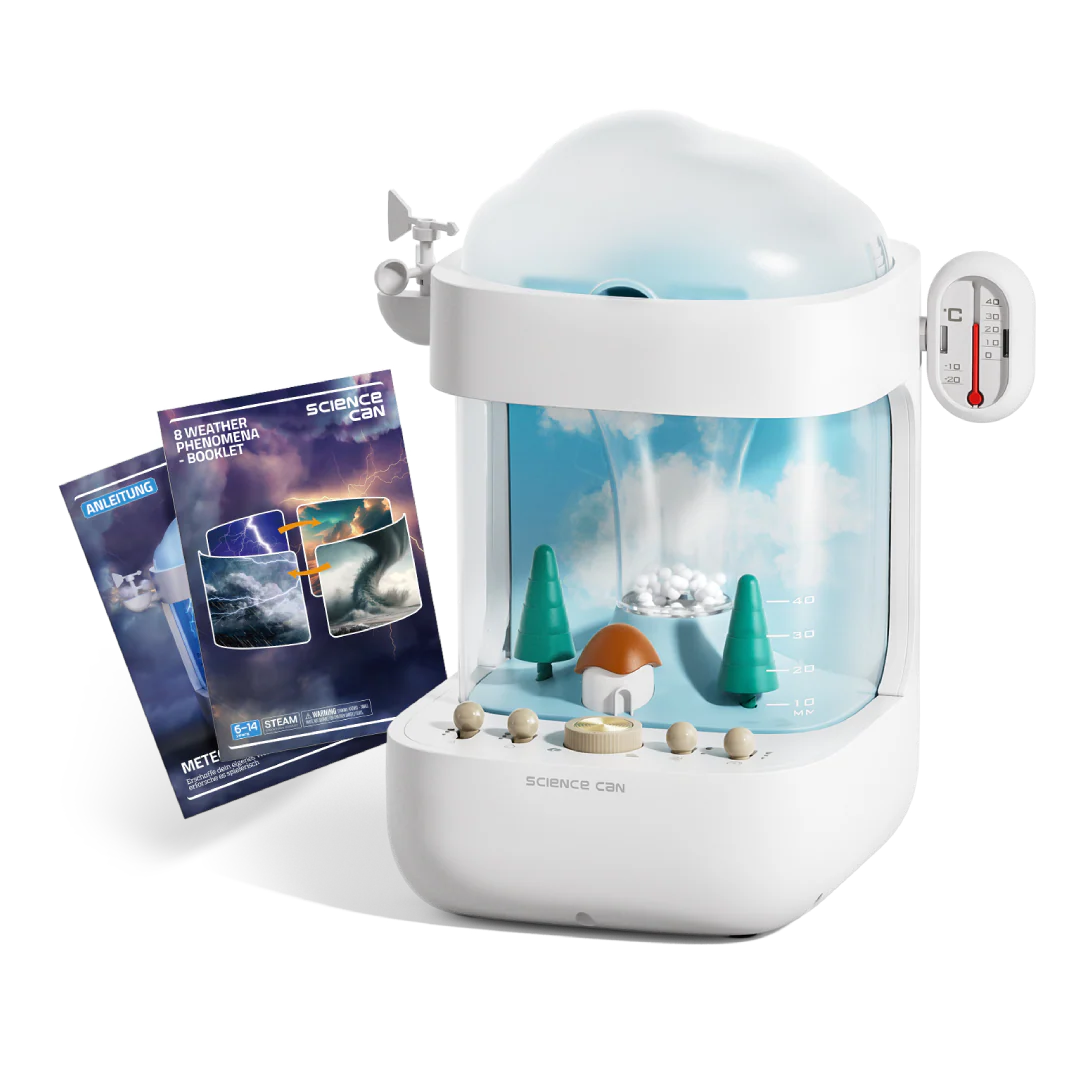 Mit dem meteorologischen Labor erforschen Kinder die Geheimnisse des Himmels, indem sie acht reale Wetterphänomene wie Wolken, Nebel, Regen und Tornados simulieren. Die interaktive Wetterstation erklärt jeden Prozess Schritt für Schritt, während verstellbare Regler es Kindern ermöglichen, mit Temperatur, Luftfeuchtigkeit und Luftstrom zu experimentieren. Entwickelt für neugierige Köpfe ab 6 Jahren verwandelt sie Lernen in ein spaßiges, sinnliches Erlebnis.