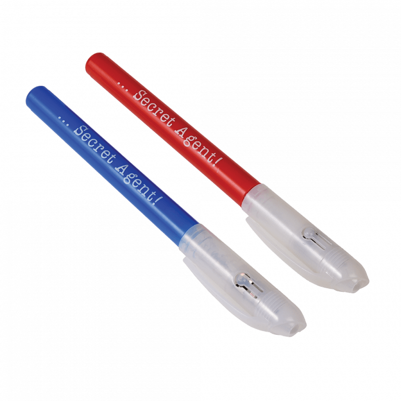 Ein tolles Geschenk für kleine Spione: Mit diesen Kugelschreibern können Sie geheime Nachrichten schreiben, die nur unter dem UV-Licht der Stifte gelesen werden können.