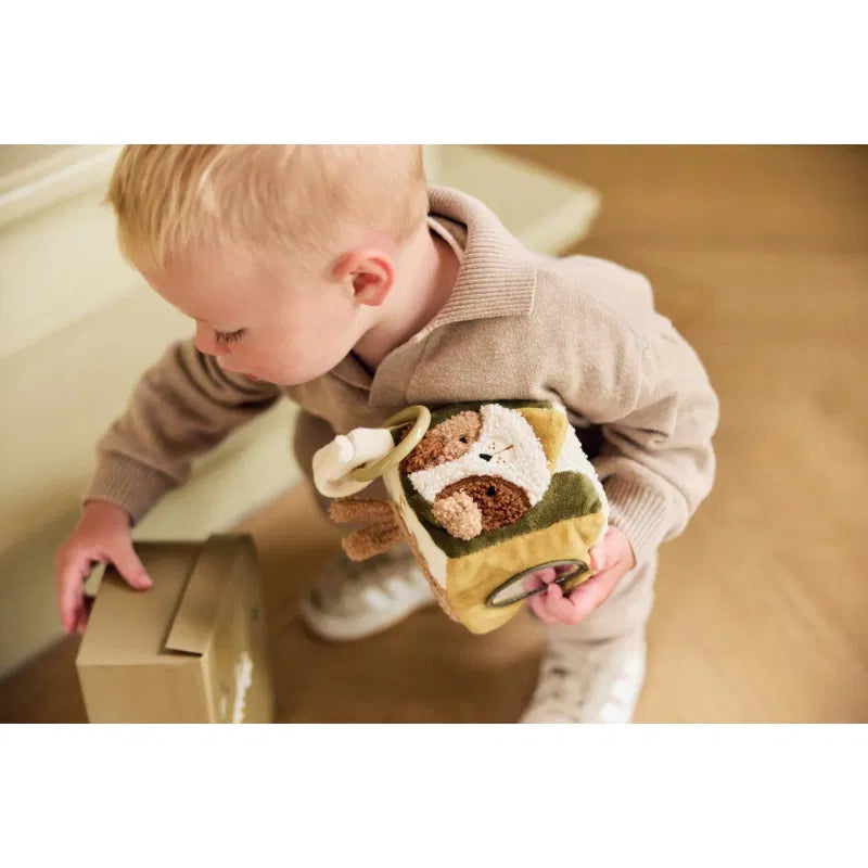 This activity cube from the Jollein Tiny Park collection offers your little one hours of playtime. Featuring different animal characters, like a cat, dog, and owl and fun interactive elements like rattles, mirrors, and crinkly fabrics, the cube stimulates your baby's senses. Ideal for developing motor skills and perfect for use in the playpen or nursery!