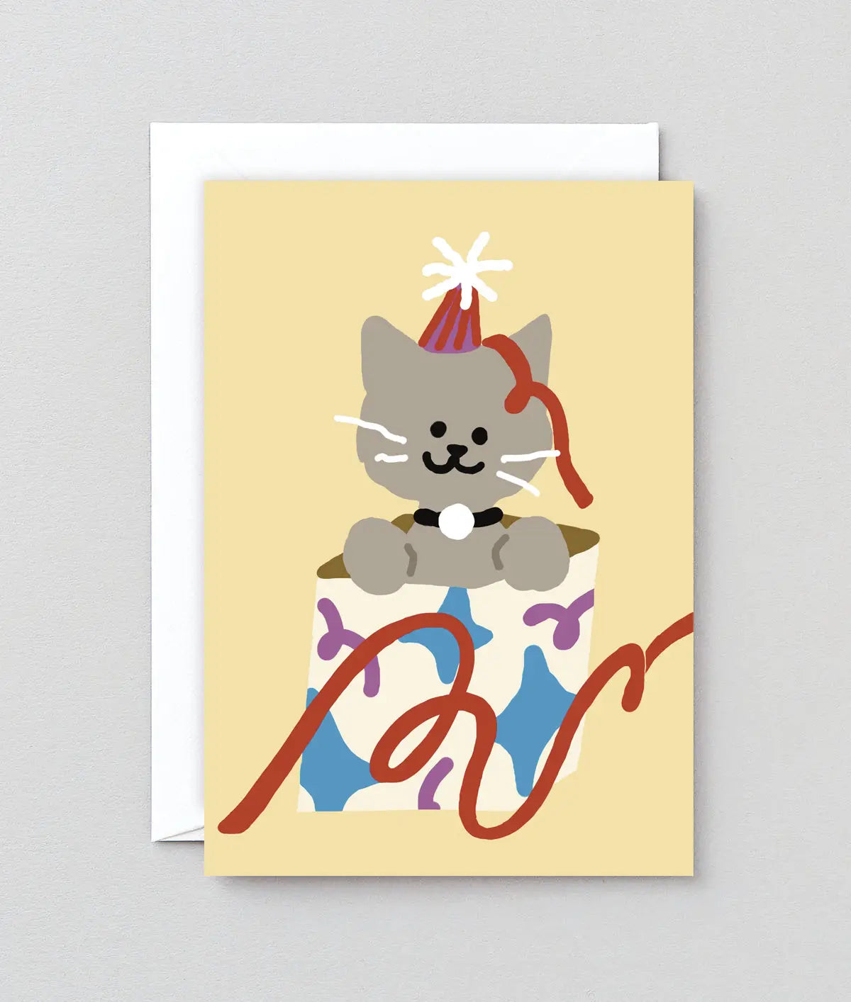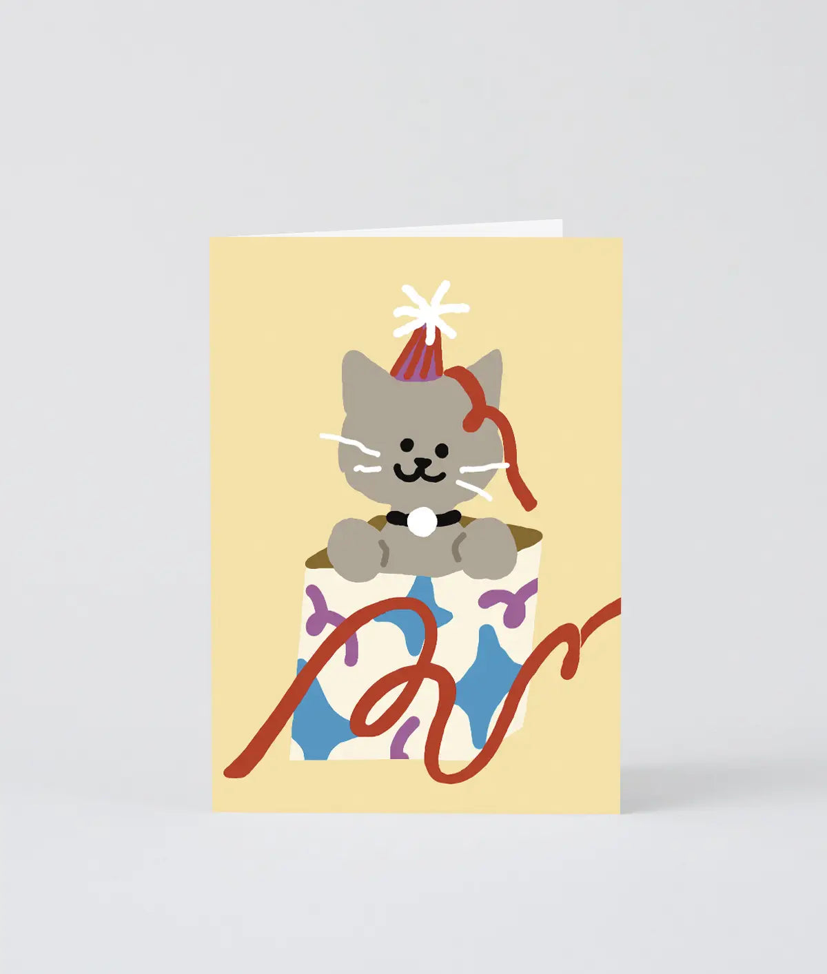 Fun colourful cat-themed birthday card with a blank space inside to write your message.