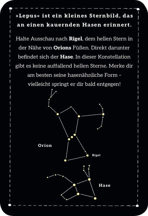 This beautifully illustrated (German language) map set allows children from 5 years of age to discover and determine 30 constellations, planets and celestial bodies in the sky - without a telescope. The 9 constellations in the map set shine even in the dark if you have previously put them in the light, so that you can perfectly compare them with the night sky. Short information texts, written by a leading NASA science journalist, convey the most important things about the respective appearance. A must-have for all star enthusiasts!