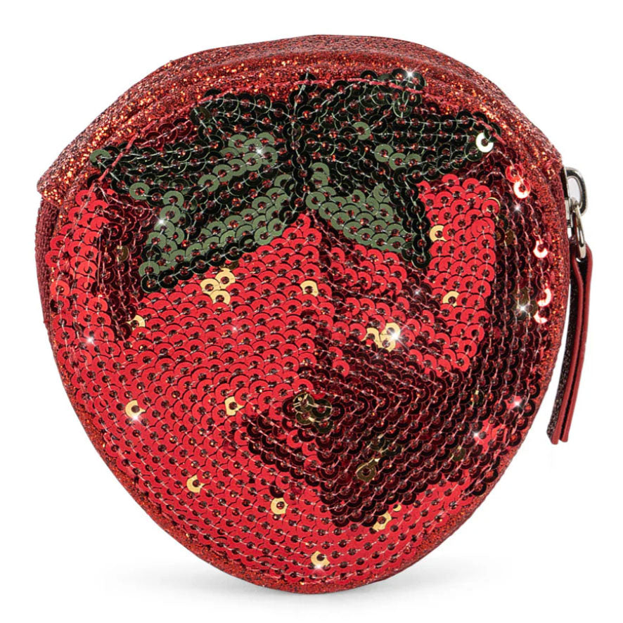 A cute little wallet, decorated with sequins and shaped like a delicious strawberry. The perfect size for all your essentials, it adds a sweet and personal touch to your outfit.