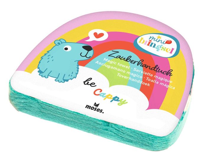 Magically Unfolded – Magic Towel with Popular Animal Motifs. From small to large: Simply place it in water and the compact package unfolds into a soft towel in a cheerful, colourful design. The charming illustration features a cute capybara motif – perfect for little animal lovers.