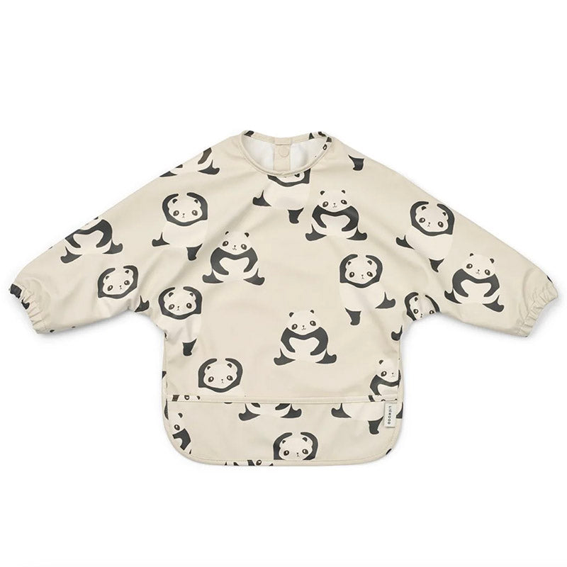 Liewood bib with long sleeves. This lightweight cape bib for children who are learning to eat. Featuring a selection of cute animals, this bib is made from 100% recycled material and is both practical, sustainable and the material is easy to wipe clean.