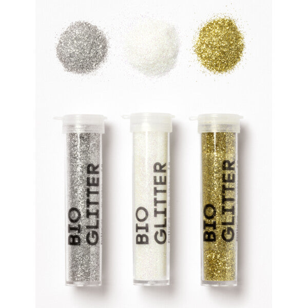 This bio glitter is a bio-based industrial plastic made from polylactide (polylactide consists of corn starch and lactic acid). The glitter is biodegradable in industrial composting facilities. It is suitable for decorating cards and decorative items, as well as for sprinkling onto double-sided adhesive lettering.