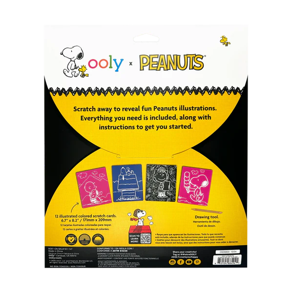 Explore Snoopy’s adventures in vibrant colours with the OOLY x Peanuts Scratch Art Kit! Scratch away the surface to uncover bright Peanuts scenes featuring Snoopy, Woodstock, and the gang. This scratch art for kids comes with 12 scratch cards and a wooden stylus, perfect for kids who love surprises. Whether you’re revealing Snoopy in flight or Charlie Brown at bat, this kit showcases the joy of the Peanuts world with every scratch! Perfect for Snoopy fans.
