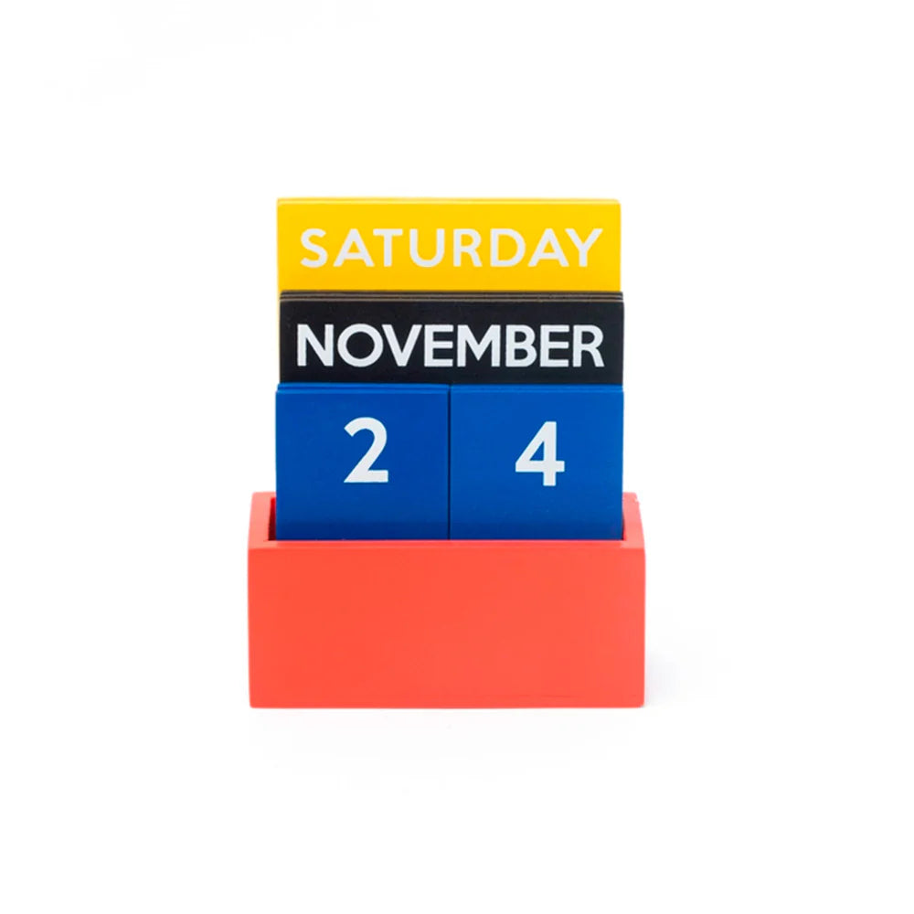 This small, multicolored calendar boasts a compact design and a modern, eye-catching style. Ideal for small desks or personal spaces, it is both functional and visually appealing.