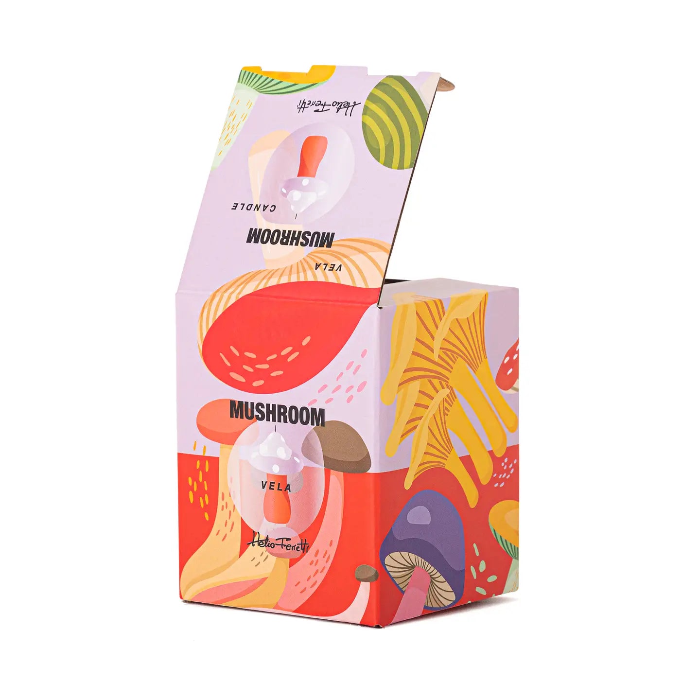 The small rosy mushroom candle is a decorative candle designed to resemble a mushroom. It is ideal for use as a striking element in interior decor. It can be placed on a flat surface, such as a table or shelf, to add a touch of color and sophistication to a space. In addition to its decorative function, when lit, the candle provides a soft and ambient light, creating a cozy atmosphere. Hand painted product with lots of love. See more products from Helio Ferretti.