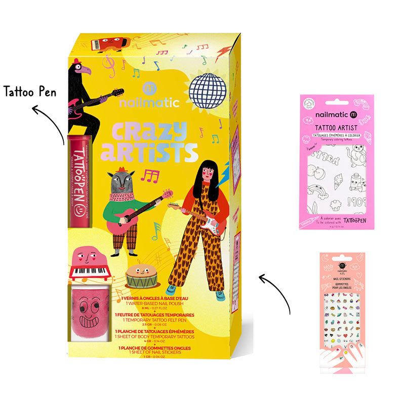 Tattoos, Nail Polish & Nail Stickers Set ''Glitter Gang Crazy Artists''